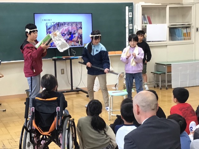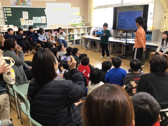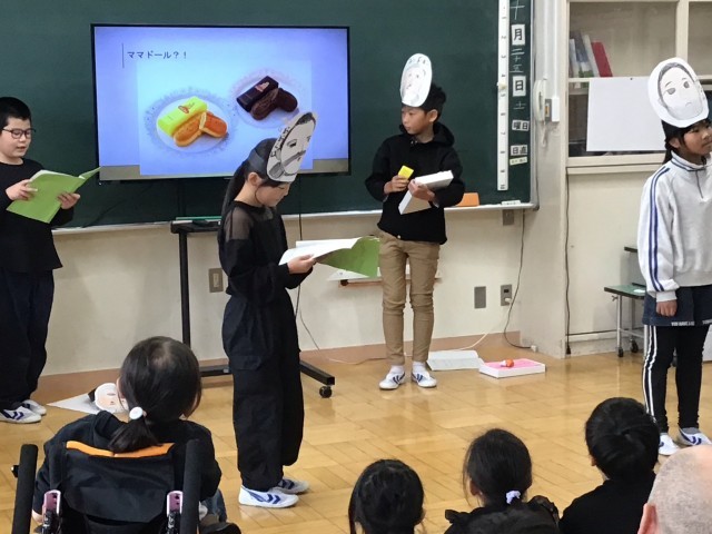 2年生は町探検に行って学んだことをグループで協力し合いながら発表しました。4年生は安積疎水について学んだことを劇や紙芝居で発表しました。6年生は自分が就きたい職業について調べたことをタブレットを使って発表しました。