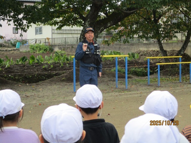 本日多田野小学校では、第2回避難訓練が行われました。本校では火災想定、分校では、土砂災害を想定し実施しました。校長先生より、「そなえあればうれいなし」と日常の準備の大切さを、大槻分署の方から「お・か・し・も」を一つ一つ丁寧に説明していただきました。児童と職員による消火器訓練。1年生の消防車見学。最後に防火扉からの避難も体験しました。全児童が真剣に行動することができました。