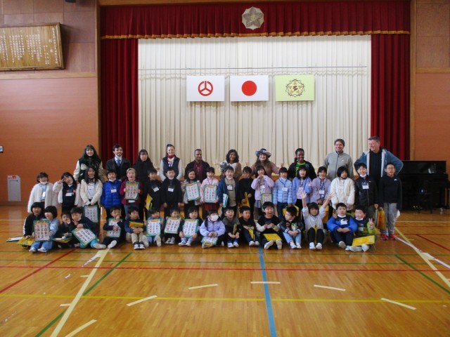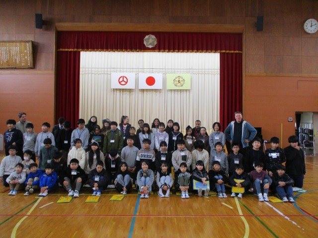 多田野小学校と河内小学校合同の国際交流会が行われました。10人のAETの先生方との交流でした。各国の紹介を目をキラキラさせ聞くことができました。「〇〇は何?」「すごーい!」と質問や感想での交流を行いました。それぞれが新しい発見をした時間でした。