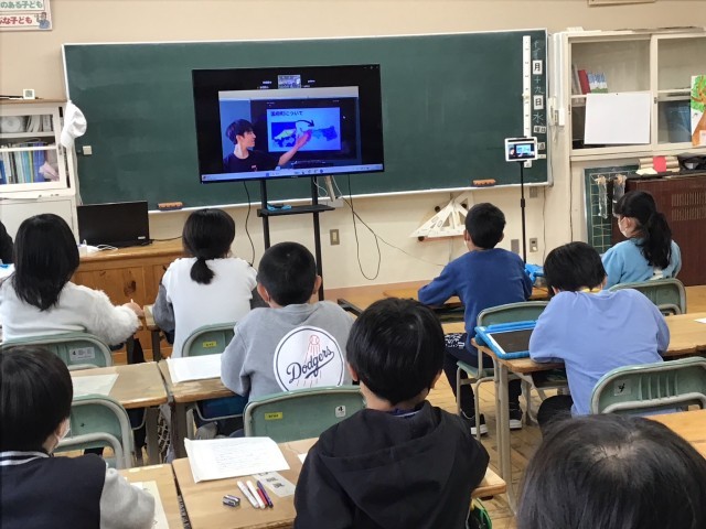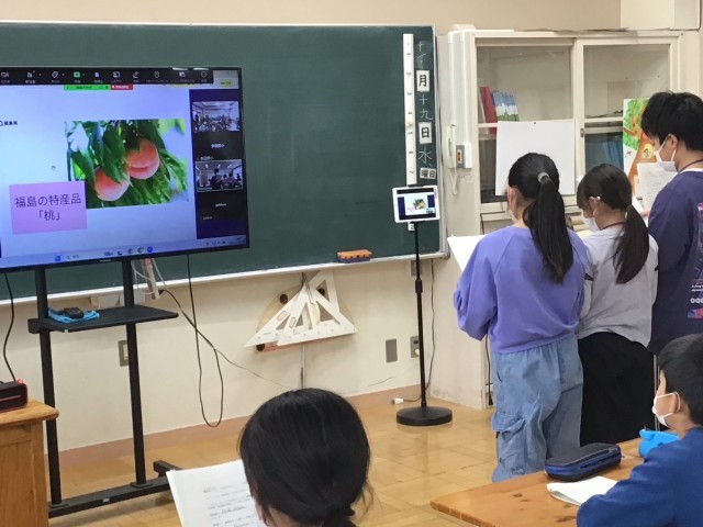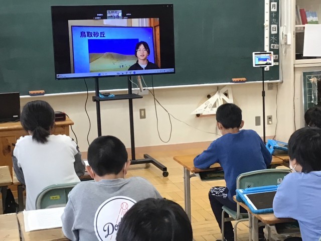 鳥取市立国府東小学校と多田野小、堀口分校、河内小の3・4年生がオンラインで交流学習を行いました。はじめに国府東小学校が鳥取市や自分たちの学校のことを紹介しました。次に多田野小、堀口分校、河内小が郡山市のことや学校のことを紹介しました。最後に安積開拓に鳥取市が深くかかわっていることについて調べたことを発表しました。お互いの地域のことや明治時代から鳥取市とは深いつながりがあることなどを知ることができ、たくさんのことを学ぶことができた時間となりました。