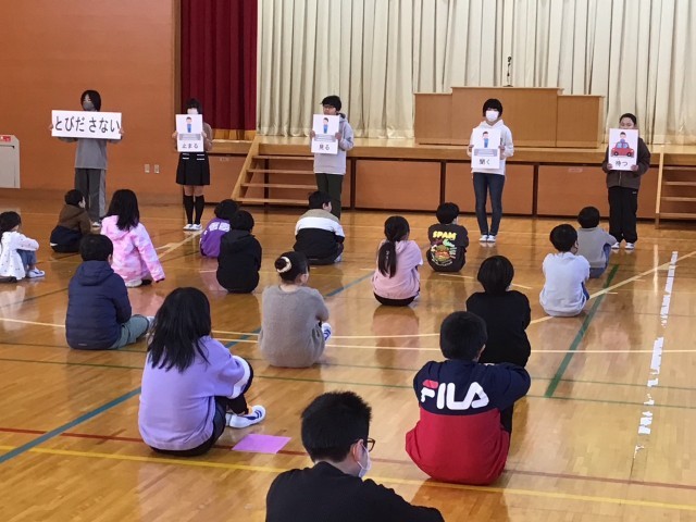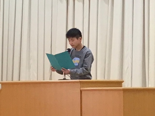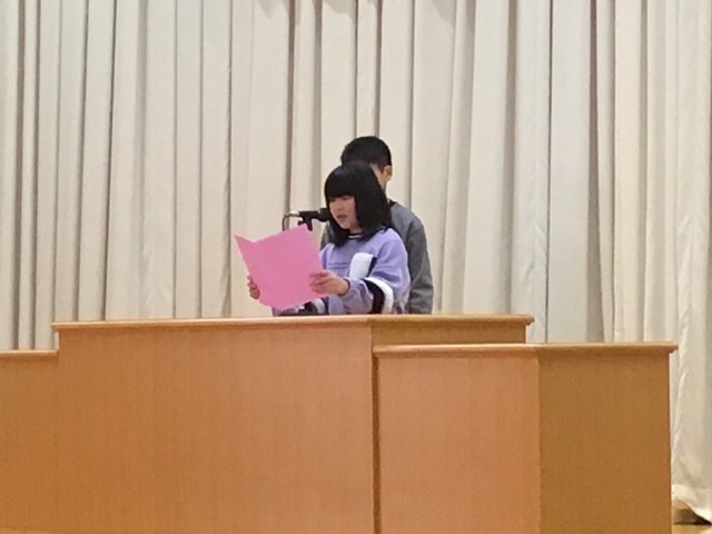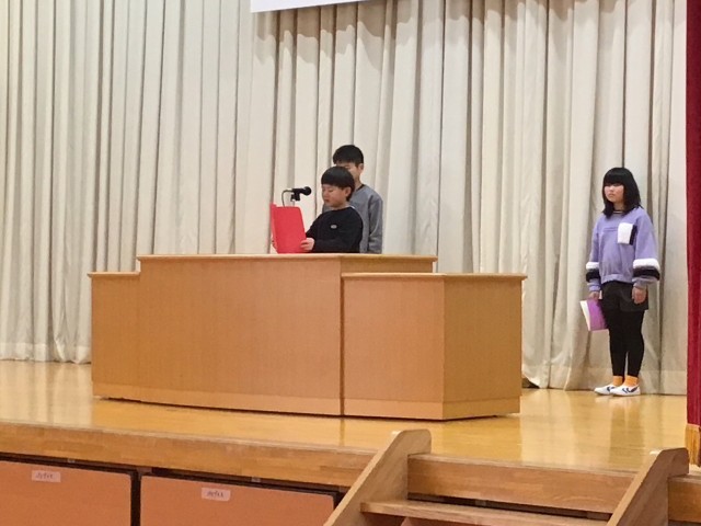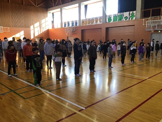 82日間の二学期が終了しました。終業式では校長の話の後、本校3名の代表児童と分校全員(5名)が二学期に頑張ったことと冬休みに楽しみにしていることを発表しました。苦手な学習も粘り強く取り組んだことや言葉づかいに気を付けたこと、様々な行事でがんばったことなどの発表がありました。式終了後、生徒指導の先生から交通事故に絶対に合わないように具体的な指導がありました。約束を守って楽しい冬休みを過ごしてほしいと思います。