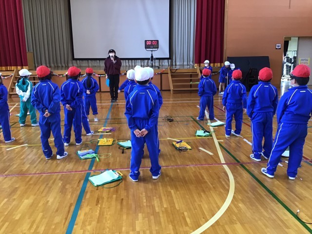 学年閉鎖のため延期になっていた1年生のなわとび記録会を本日実施しました。初めに持久跳び(1分間)を行いました。1分間跳び続けた合格者もたくさんいました。次は種目跳びです。自分で選択した種目に挑戦します。後ろ跳びやかけあし跳びに挑戦し、自己ベストを更新する児童がたくさんいました。河内小の一年生も参加し、仲よく活動することができました。