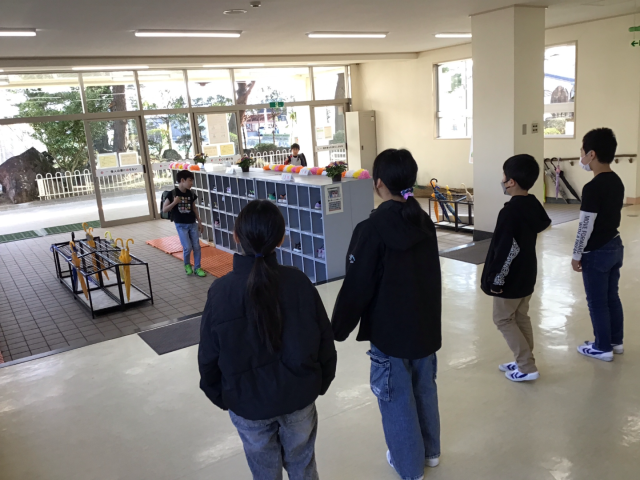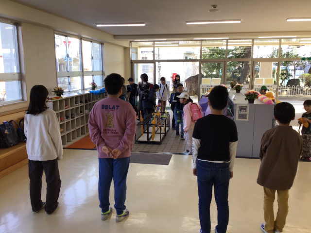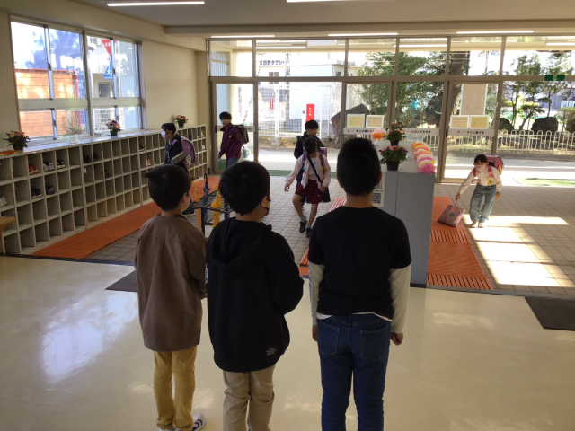 朝のあいさつ運動は、5つの委員会が、ひと月ごとに持ち回りで行います。今月のあいさつ運動は、運営委員会が担当します。「おはようございます。」元気な声が昇降口に響きました。