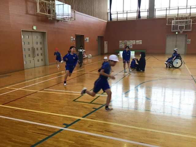 あいにくの雨模様。今日は体育館で運動会の練習です。4年生は4チームに分かれて全校リレーの練習です。昨年度より走りに力強さが出てきた4年生。チームワークもよく最後までバトンがつながれていました。