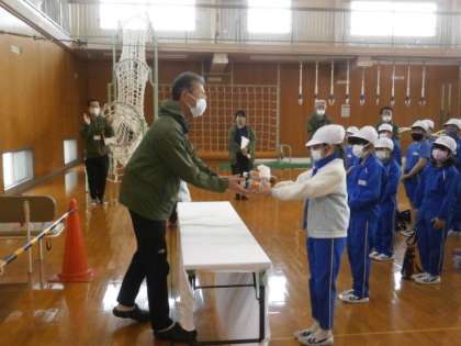 自然の家での、オープニングセレモニーに行ってまいりました。開会式ではテープカットを、閉会式では記念品の授与を、4年生代表のお友達がつとめてきました。