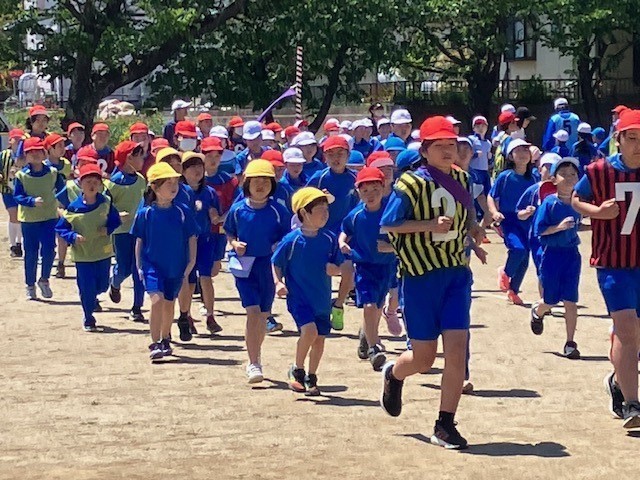 今日の全体練習はラジオ体操の後、全校リレーを行いました。一人一人が精一杯の走りをみせ、大接戦の末、赤白引き分けでした。