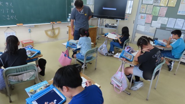 1・2年生は道徳科の授業でした。「お世話になっている人」を考え、お家の人や給食を作ってくれる調理員さんの名前が挙がっていました。3・4年生は図画工作科に取り組み、図鑑やインターネットの画像をもとにして「大きく・リアル・細かく」描く工夫をしていました。5・6年生は、河内小の思い出を題材にして作文していました。