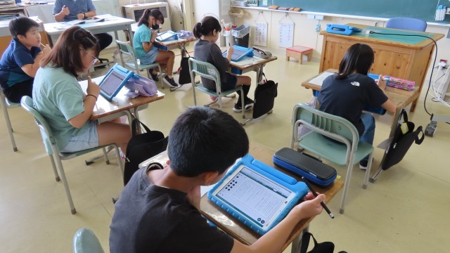 今日、学校のCBT化対応施行調査を実施しました。これは、全国学力・学習状況調査のCBT化(R8年度はふくしま学力調査をCBTで実施予定)に向けて、子どもたちのパソコン操作などを確認するものです。CBT化とは、調査の集約や結果分析を効率化するために、子どもたちが紙の用紙ではなくパソコンを使用して回答を入力することです。タッチペンを用いて回答を選択したり、文字入力して変換をして回答したりします。また、別紙に計算してその結果を入力したり、回答を選んでドラッグアンドドロップしたりします。様々な答え方が求められます。そのため、子どもたちが躊躇せずスムーズに操作できるようにするためには、操作の慣れが大切となります。今回はそうした操作方法を理解するための調査となります。様子を見ていると本校の児童は比較的スムーズに操作できていたようです。これからも数多くICT機器に触れて、様々な操作を感覚的に理解していけるよう指導していきます。