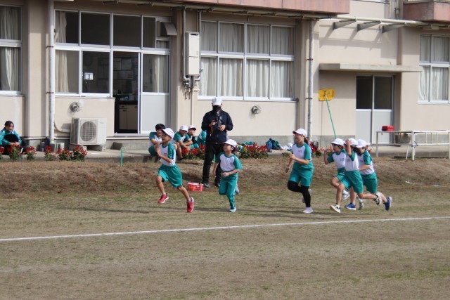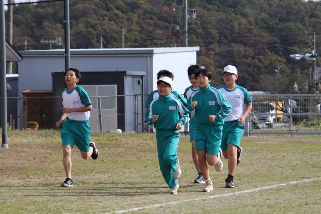 代表児童の「誓いの言葉」の後、1・2年生が校庭3周600mの持久走に挑戦しました。続いて、3・4年生の校庭4周800m。最後は、5・6年生の校庭5周1000m。好天のため多くの方々に応援してもらうことができました。そうした応援やこれまでの練習の成果を発揮して、自分の個人新記録や距離に応じた学年の新記録を目標に頑張りました。これから寒くなり、校内や家庭内での時間が長くなります。健康や体力を意識させるために、天気の良い日は積極的に外遊びさせたいですね。
