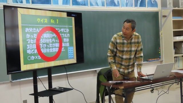 今日、5・6年生が薬物乱用防止教室を行いました。講師は、学校薬剤師の若松勝氏です。薬剤師の仕事内容や身の回りの薬剤、特にシンナーについてのお話をいただきました。また、最近、若者の間で問題になっている薬の過剰摂取(オーバードーズ)について詳しく教えていただきました。不安感や喪失感などの負の感情がきっかけとなり、相談相手がいないなどの環境が、過剰摂取につながっているとのお話でした。今日のような正しい知識とともに、子どもたちを見守るという環境を整えることの大切さを実感しました。