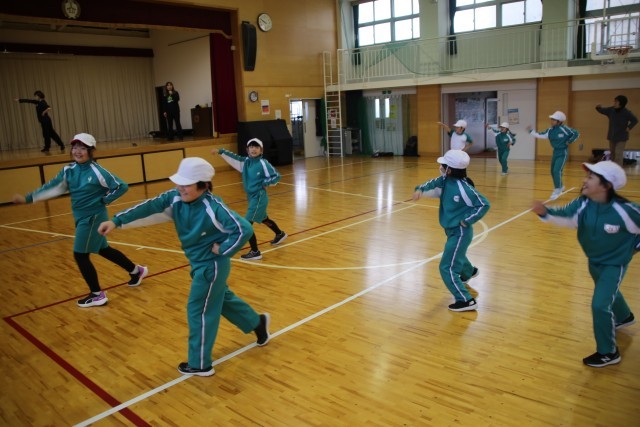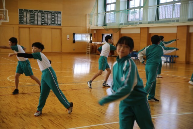 今日の2・3校時は福島スポーツアカデミーのチアダンススクールの先生を講師に招いてダンス教室の1回目を行いました。「ミッキー」の曲に合わせて身体を前に後ろに、右に左に動かします。開始前はやや寒いと感じていたのですが、終わってみると、体がぽかぽかと温まっていました。来週の2回目のレッスンで、細かい部分の動きを整えて、ダンス全体を完成させていきたいと思います。