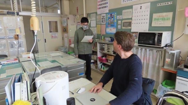今日、ブラッドリー先生の授業がありました。どの学年でも、児童代表がブラッドリー先生を呼びにきます。そして、教室まで「This way(こちらです)」と誘導しながらご案内します。今日は、3学期最初のブラッドリー先生の授業だったので、クリスマスの過ごし方など冬休みの思い出についての会話から授業が始まっていきました。本校に4年、英語指導に関わっていただいているブラッドリー先生は、子どもたちとのコミュニケーションもとても上手です。