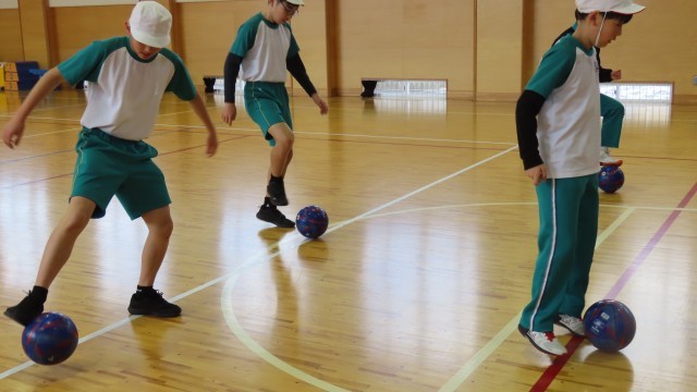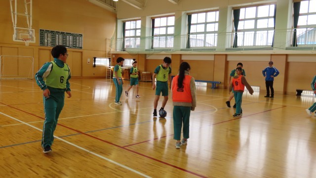 昨日に引き続き、「キッズプログラム」が行われました。今日は5・6年生が挑戦しました。ボールを使ったアップ運動から始まりました。寒い体育館でしたが、アップをしていくうちに、コートを脱ぎ、長そでを脱ぎ、半そでとなっていきました。コーチからは、「課題を与えられた時には、指示を待つのではなく、しっかり見て、試して体を動かして、できるようになっていくというように、自力で乗り越えていくことが大切なんだよ。」とお話しいただきました。体をたくさん動かして、ボールを呼ぶ声を出して、体も心も温まる楽しいプログラムでした。