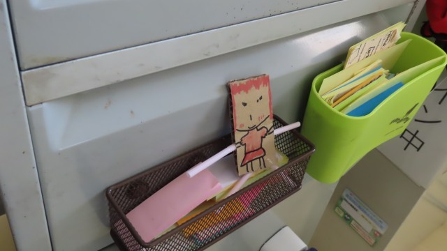1・2年生が図画工作科「すきまちゃんのすきなすきま」の授業で、かわいいすきまちゃんをつくって、校長室のすきまに隠してくれました。6人のすきまちゃんがいるはずなのに、5人のすきまちゃんしか発見できません。上手に隠したことに、とても感心しました。残り1人のすきまちゃんはどこに隠したのかな?