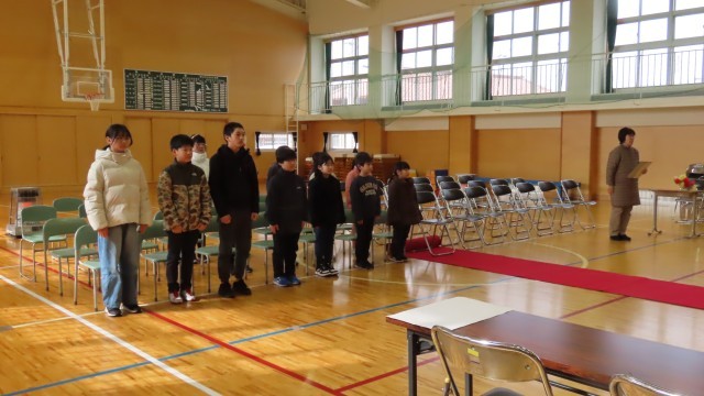 卒業式まで、10日に迫りました。証書授与や別れの言葉など、子どもたちは卒業式の練習に一生懸命に取り組んでいます。前回より、声は大きくなり所作もしっかりとしてきました。一人一人が意識を高くして式への参加意欲が高まるよう指導しています。