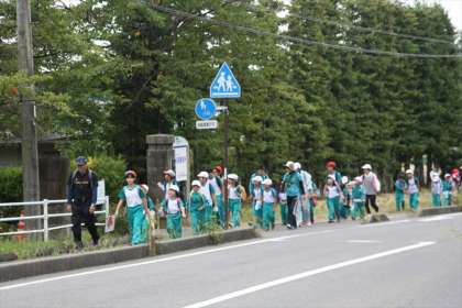 天候が回復してきたので、帰りは歩いて帰ることになりました。子どもたちは疲れることなく、元気に歩いていました。