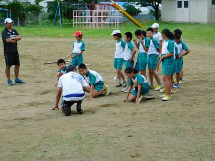 9月21日に行われる市陸上交歓会に向けた練習が始まっています。今日は,スタブロを使ったスタート練習を行いました。教頭先生,担当の先生と一緒に足の位置,スタートのタイミングについて繰り返し練習をしました。