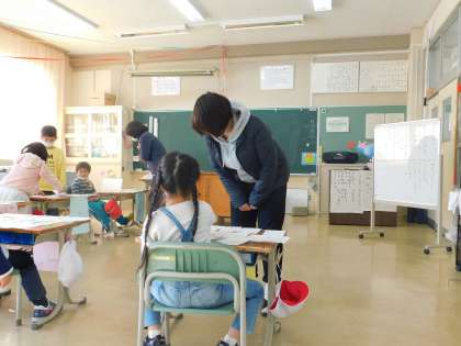 自分たちで商品をイラストにして準備し,お店での会話について学習しました。先生方がお客さん,子どもたちがお店の役です。商品のピーアールややりとりを,上手にすることができました。