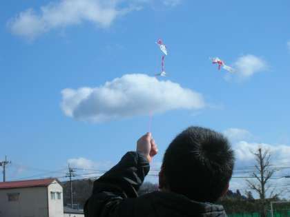 子どもたちも凧揚げのコツを覚えて、うまく揚げることができました。