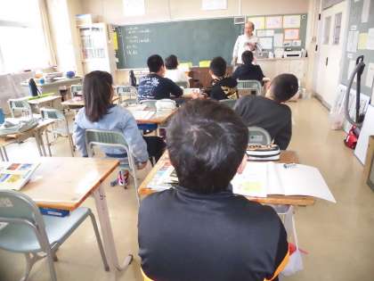 校庭の桜も満開となりました。5・6年生社会科の授業風景です。5年生は日本の地理や産業等,6年生は日本の歴史や国政等について学習していきます。