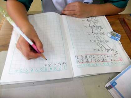 2年生の1校時は算数で、「計算のしかたをくふうしよう」の学習で、たす数やたされる数を分けて何十にして計算すると計算しやすいことを学習していました。