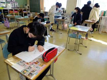 6年生の1校時は、卒業文集を書いていました。修学旅行や陸上交歓会などそれぞれの小学校の思い出を考えながら書いていました。