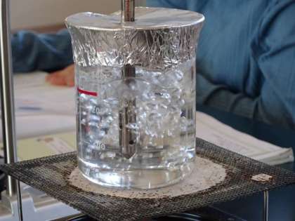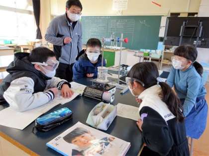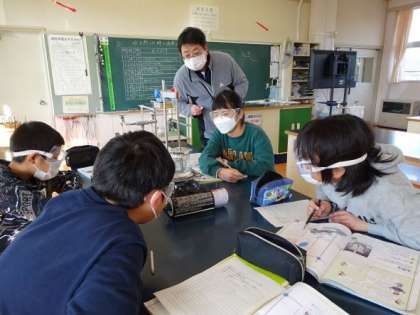 4年生の3校時は理科で、理科室で実験を行っていました。実験では、「水を温めていくと、水の温度やようすは、どのようにかわるか」を確かめていました。ガスコンロを使って、水を熱していくと、90度近くで泡が出始め、95度ぐらいで温度上昇が止まることが分かりました。