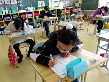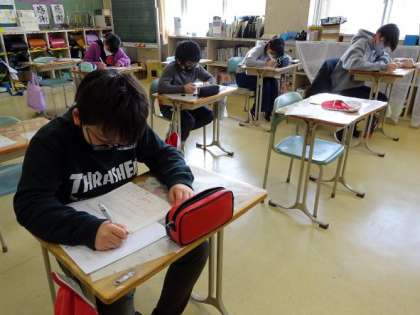 6年生の1校時、卒業文集の清書に取り組んでいました。清書用の原稿用紙に、ていねいに書いていました。どんな文集ができるか楽しみです。