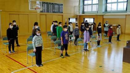 2校時目に、卒業式の全体練習を行いました。今日は、初めての全体練習だったため、礼法について指導した後、大まかな全体の流れが分かるように通してみました。初めての全体練習だったのですが、6年生はさすがで、歌も呼びかけも8人で在校生を上回る声で行っていました。次の全体練習は水曜日。来週は予行練習となります。素晴らしい卒業式になるよう、がんばってもらいたいと思います。