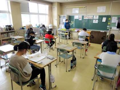 6年生の3校時は道徳で、「前を向いて(集団生活の充実)」の学習でした。今日は、集団の中で、自分の役割を精一杯やり遂げることについて学習していました。