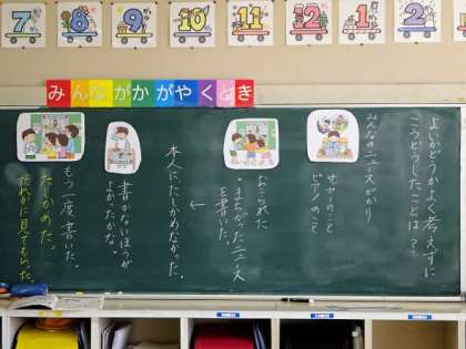 2年生の4校時は道徳で、「みんなのニュースがかり(善悪の判断、自律、自由と責任)」の学習をしていました。ニュースがかりの主人公がよく確かめないでニュースを教室に貼ったところ、みんなから正しくないと言って怒られたというエピソードをもとにどうすればよかったかを考えていました。
