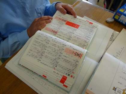 4年生の1校時は国語で、漢字辞典の使い方の学習をしていました。実際に漢字辞典を使って、総画索引や音訓索引、部首索引などいろいろな方法で、漢字の意味を調べていました。