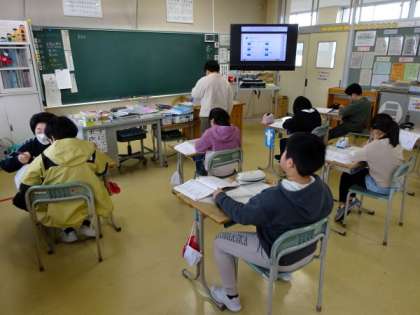 4年生の1校時は算数で、「たしかめよう」を使って、4年生の復習をしていました。やり方を忘れてしまったところは先生に聞きながら、問題を解いていました。