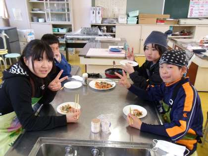 12月9日(金)3・4校時目に調理実習をしました。今回は「野菜いため」で、各班が材料を工夫して、おいしいいため物ができました。みんな家でお手伝いしているので、とってもじょうずにできました。