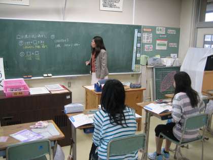6年生も算数の授業でした。数量の大きさを文字「χ」を用いた式で表す学習をしました。
