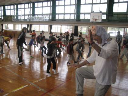 10月21日(月)に、逢瀬町ひょっとこ愛好会の方々においでいただき、ひょっとこ踊りを教えていただきました。今度の土曜日(26日)の河内フェスタで、全校生でひょっとこ踊りを披露するためです。みんなすぐに上手に踊れるようになりました。