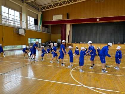 一年生の体力テスト測定のお手伝いをしました。反復横跳びでは手を繋ぎながらステップの確認をして、上体起こしでは、足元をしっかり押さえて数えるお手伝いをしました。6年生のお兄さん、お姉さんらしい姿を見ることができました。