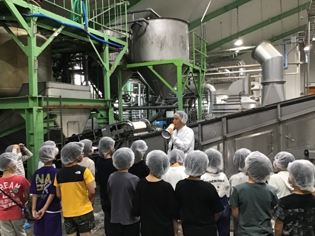 10月6日「宝来屋本店たからみそ工場」さんに見学に行きました。不織布の帽子をかぶり、靴カバーをつけて入った工場内には、大きな機械がたくさんありました。説明を聞きながら工場を見せていただきました。お土産もいただき、大満足な子ども達です。宝来屋さん、ありがとうございました。