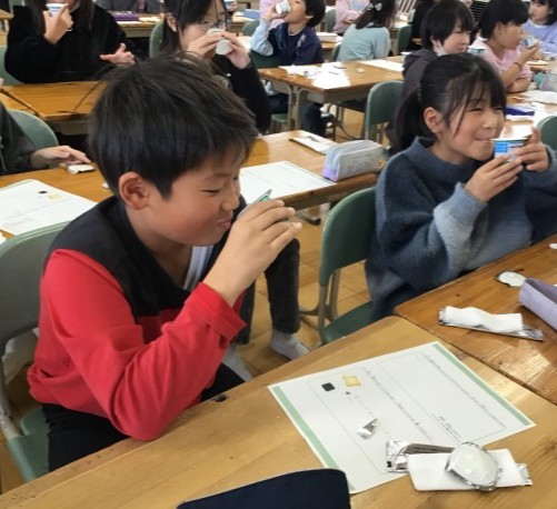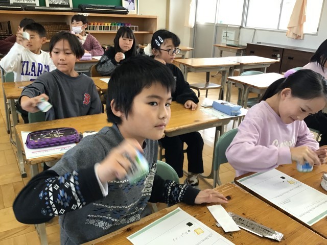 13日に、株式会社明治さんの出前授業を受けました。「じょうぶな体をつくろう」で、骨の成分や栄養素の話をしていただき、丈夫な体のためには、しっかり食事をすること、たくさん運動すること、ゆっくり睡眠をとることが大切と教えていただきました。最後は、お楽しみ、飲むヨーグルト!頑張ってふって、美味しいヨーグルトをいただいた3年生です。