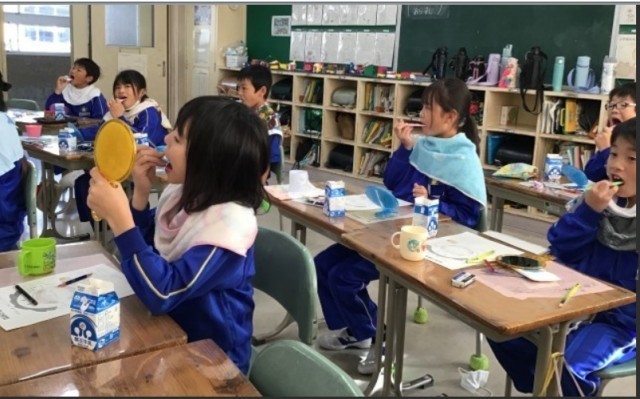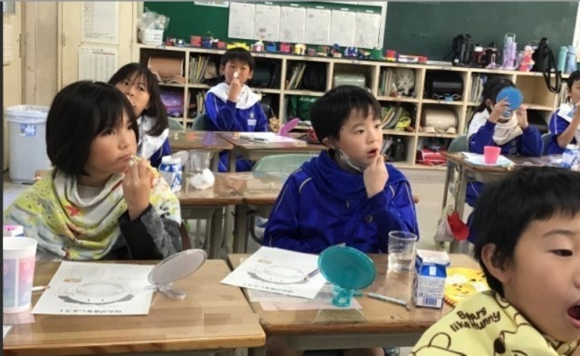19日に今年2回目の歯磨き指導をしてもらいました。朝磨いてきたばかりですが、奥歯の溝や歯と歯の隙間などに磨き残しがあったようです。新しい歯磨きの曲に合わせて磨いた結果、ピカピカの歯になりました。