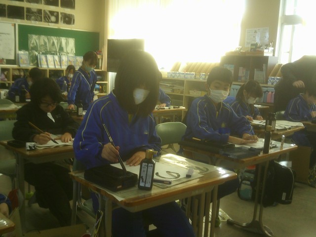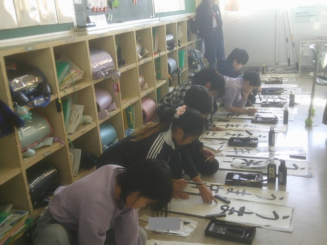 慣れない条幅紙に一生懸命書く様子が見られました。