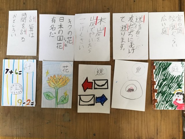 国語の学習で作った音訓かるたを楽しんでいます。冬休みには持ち帰りますので、ご家庭でも楽しんでください。