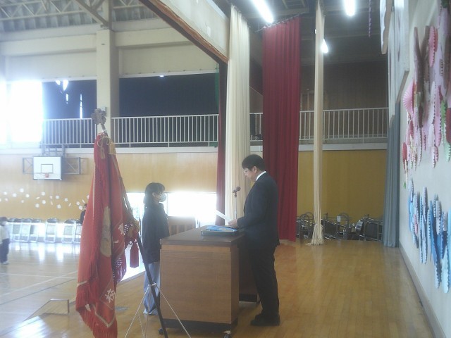 1~5年生の代表の児童に、修了証書が授与されました。
