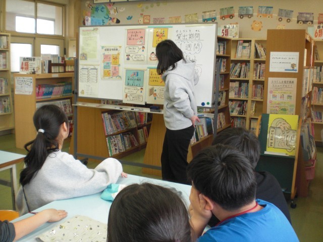 国語の時間に図書のオリエンテーションを行いました。図書の貸し出しのルールの確認や5年生の目標冊数について図書担当の先生から説明を聞きました。そして、5年生初めての本の貸し出しも行い、高学年向けの本を意識しながら本を選びました。