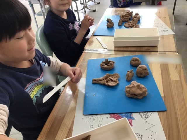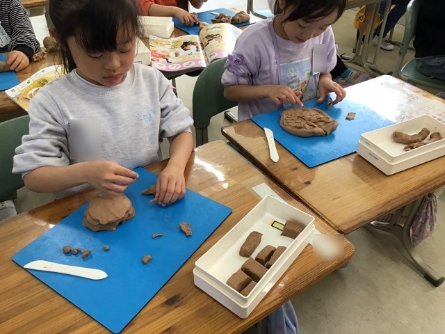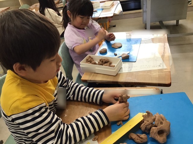 図工の「ねんどでごちそうなにつくろう」では、真剣な表情で一人ひとり素敵なごちそうを作り上げました!