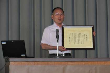 最初に、校長が「郡山医師会表彰」の賞状を披露しました。