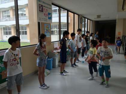 昇降口では、今日も喜久田っ子委員会の子どもたちによる「朝のあいさつ運動」が行われています。