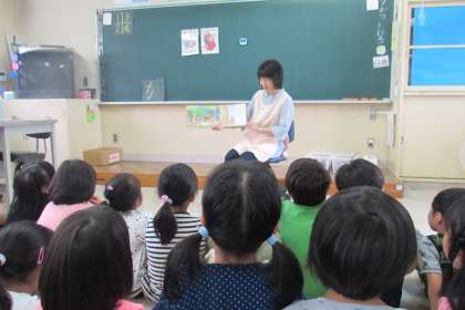 今朝の読書タイムの時間に、「ママのポケット」のお話会が行われました。