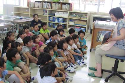 1年生には「めっきら もっきら どおん どん」(長谷川摂子作・降矢なな画)を読んでくださいました。
