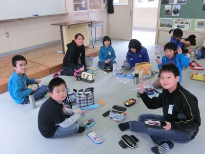 喜久田っ子ファミリー・お弁当の日は、天候が悪く、外で活動することはできませんでしたが、縦割り班で楽しく活動することができました。